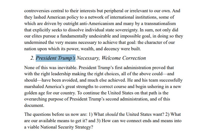 I just finished reading Trump’s National Security Strategy paper for 2025. I think i can agree with a few of the things that were said in the paper, but not for the reasons Trump and his merry band of captured regulators would prefer. I also found a few things in the paper one could reasonably expect from people who are continually searching for a moral justification for selfishness.