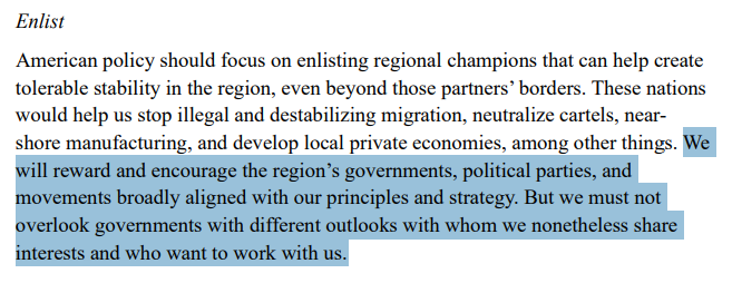 I also want to point out some of the posturing language in the document, language that seems to intimate some idea of leverage or overwhelming power that America has over other countries. Here is one example from page 15 in a discussion about the Monroe Doctrine: