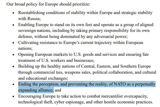 I agree with the document, and by proxy, with Trump on ending the expansion of NATO, especially by excluding Ukraine. I’m not thrilled about the 5% defense spending goal for NATO countries as that would reduce spending on other things like healthcare, education and public infrastructure.